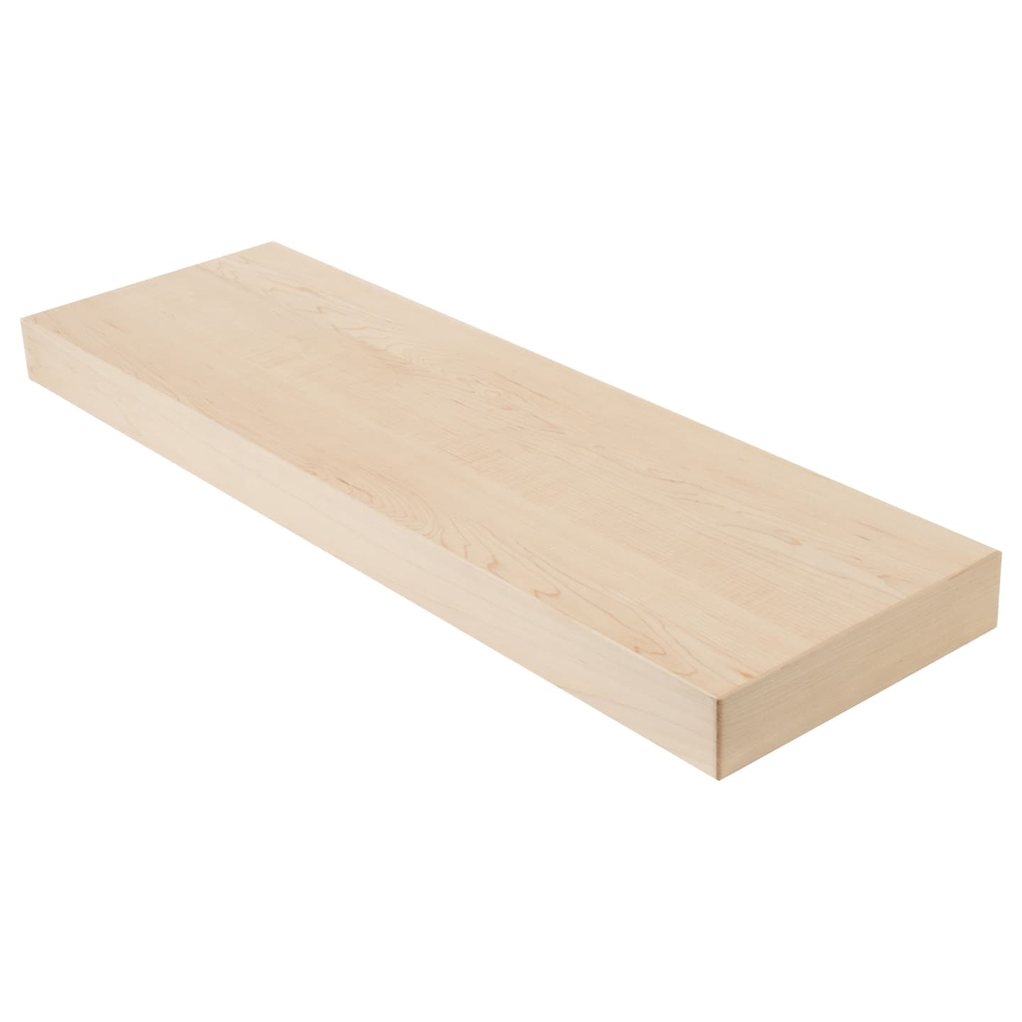 At a refined 2.5" thick, the tread's solid engineered core is clad in a Hard Maple hardwood wear layer on all 6 sides, delivering stunning face grain from every angle — never edge grain. A 1/8" roundover on every edge completes the refined, finished look. The 2.5" profile strikes a precise balance between visual weight and restraint — substantial enough to anchor the design, understated enough to let the wood's natural character lead.