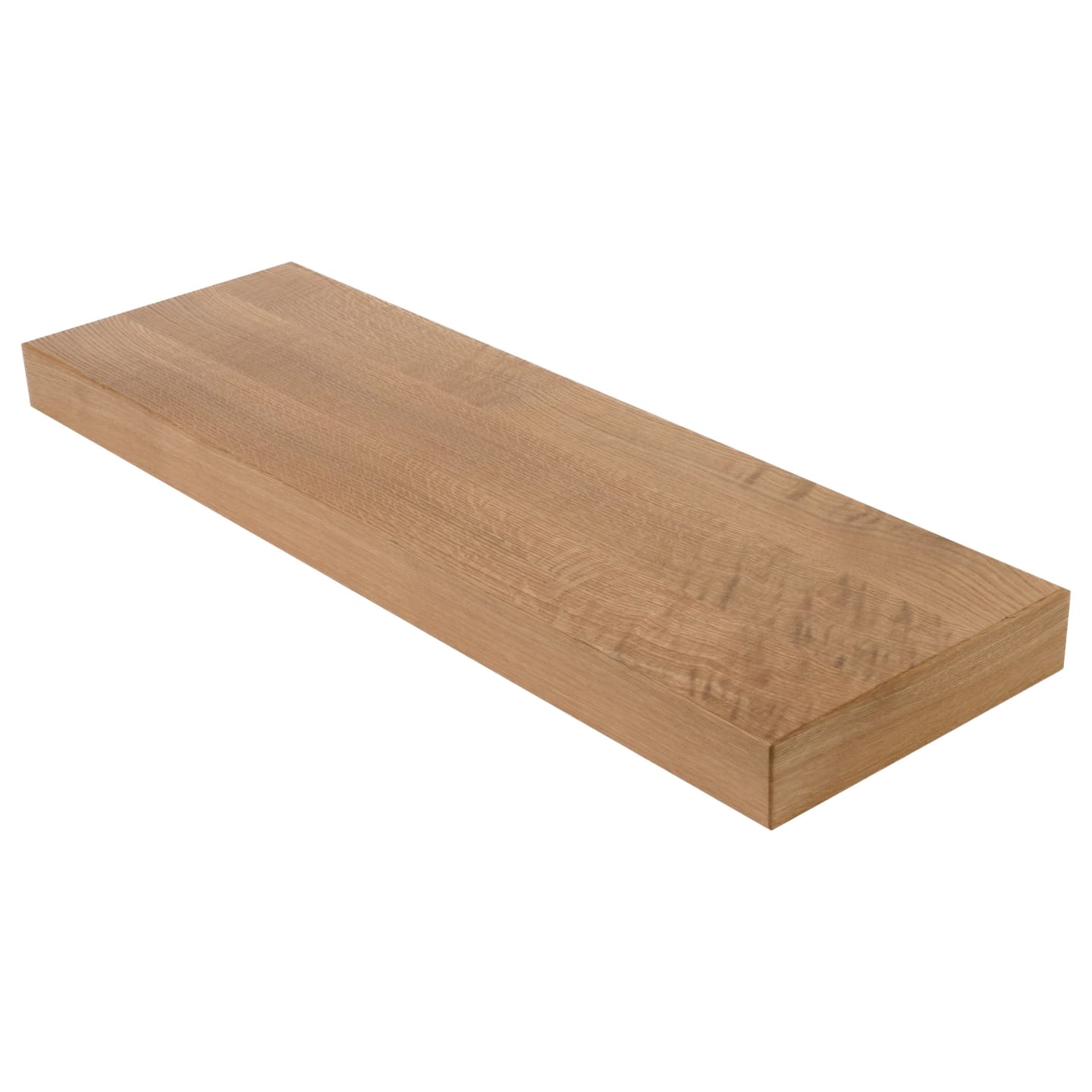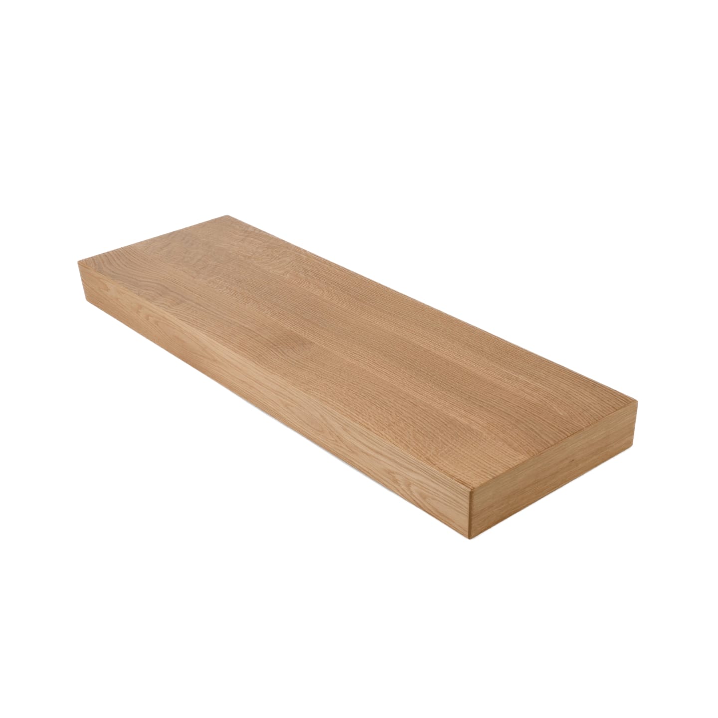 At a refined 2.5" thick, the tread's solid engineered core is clad in a Quartersawn White Oak hardwood wear layer on all 6 sides, delivering stunning face grain from every angle — never edge grain. A 1/8" roundover on every edge completes the refined, finished look. The 2.5" profile strikes a precise balance between visual weight and restraint — substantial enough to anchor the design, understated enough to let the wood's natural character lead.
