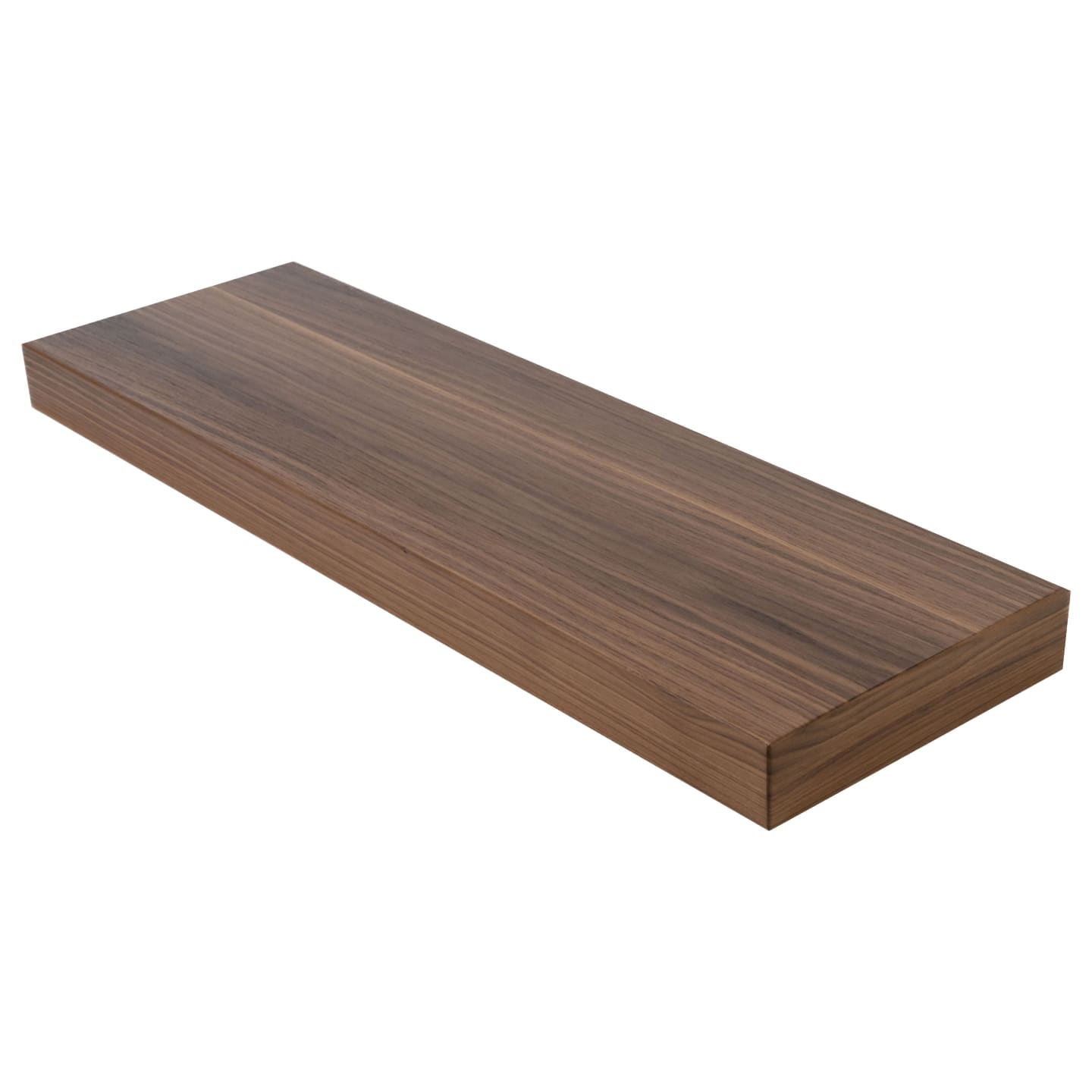 At a refined 2.5" thick, the tread's solid engineered core is clad in a Walnut hardwood wear layer on all 6 sides, delivering stunning face grain from every angle — never edge grain. A 1/8" roundover on every edge completes the refined, finished look. The 2.5" profile strikes a precise balance between visual weight and restraint — substantial enough to anchor the design, understated enough to let the wood's natural character lead.