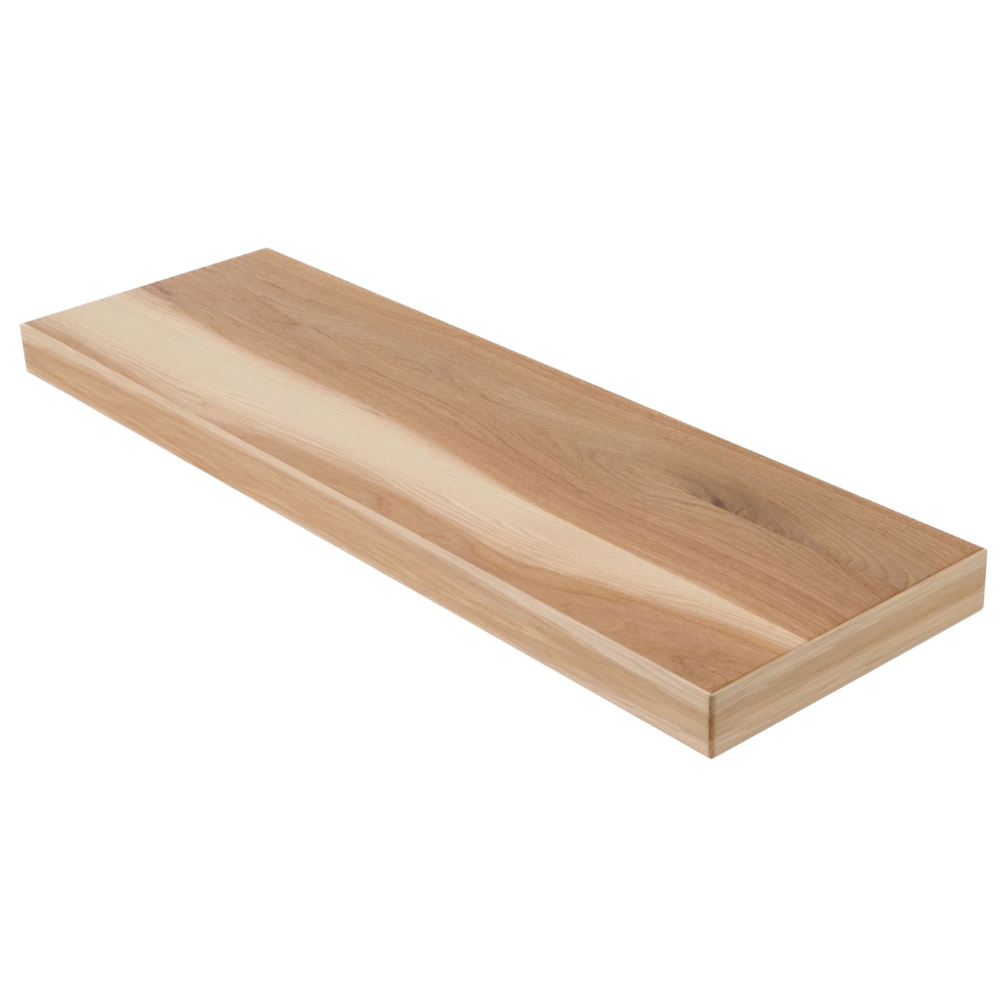 At a sleek 2" thick, the tread's solid engineered core is clad in a Hickory hardwood wear layer on all 6 sides, delivering stunning face grain from every angle — never edge grain. A 1/8" roundover on every edge completes the refined, finished look. The 2" profile is the clean, low-profile choice — ideal for contemporary staircases where the tread's presence should be felt rather than announced, and where a lean, modern silhouette is the priority.