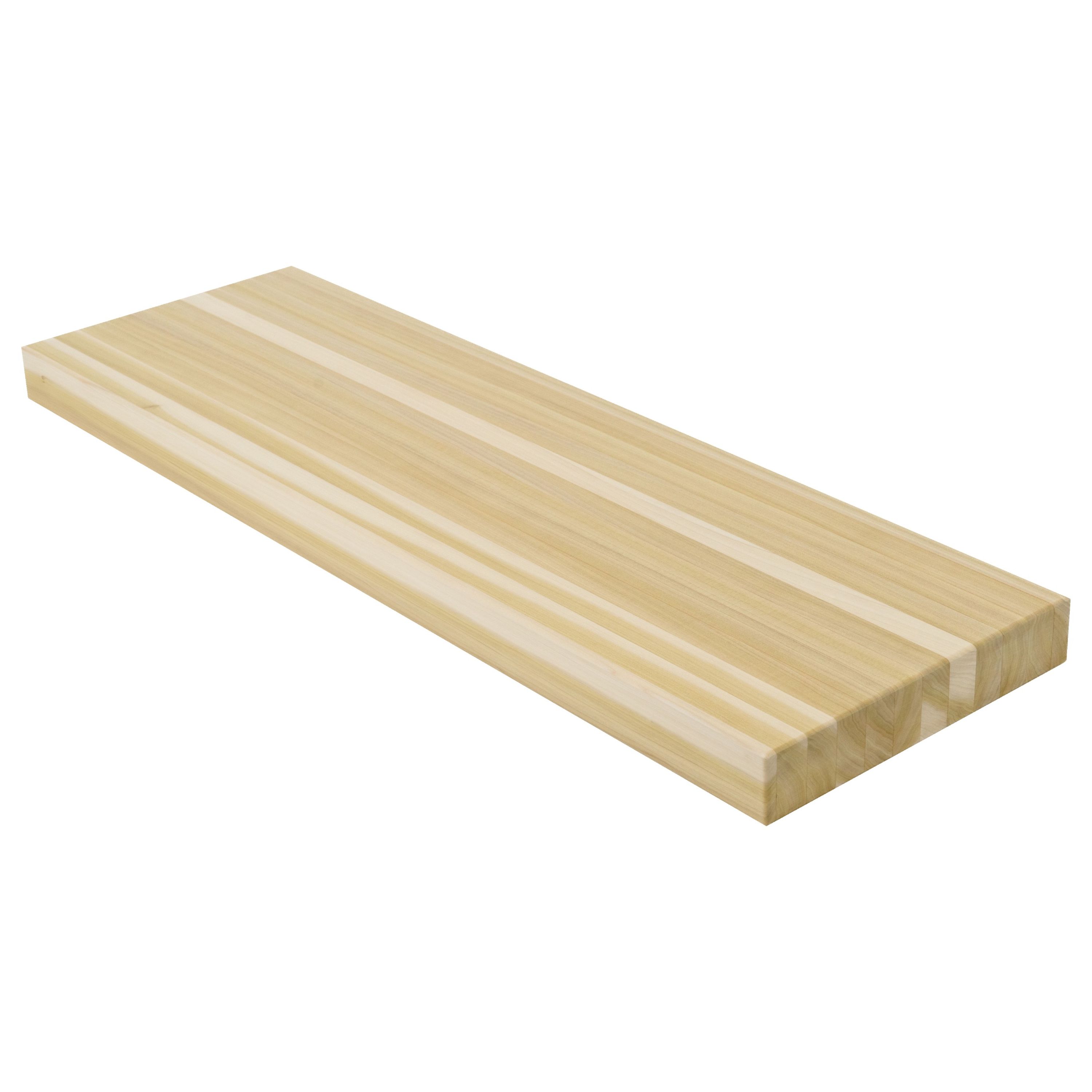 Poplar is the preferred species for painted stair applications — and in butcher block form, a surface that takes paint with exceptional consistency and depth. Its smooth, fine edge grain and consistent creamy-white tone across every laminated strip create a surface that accepts primer and paint uniformly — without the figure variation that can telegraph through lighter finishes on more characterful species. With its tight, uniform grain structure and consistent tone, Poplar butcher block delivers a furniture-grade painted surface that holds color evenly across the full walking surface. The laminated construction adds dimensional stability and reduces the seasonal movement that can stress painted finishes over time. When a painted finish is the goal, Poplar butcher block provides the most forgiving and reliable canvas in the domestic hardwood category — a surface that paints cleanly and holds that finish with lasting integrity.