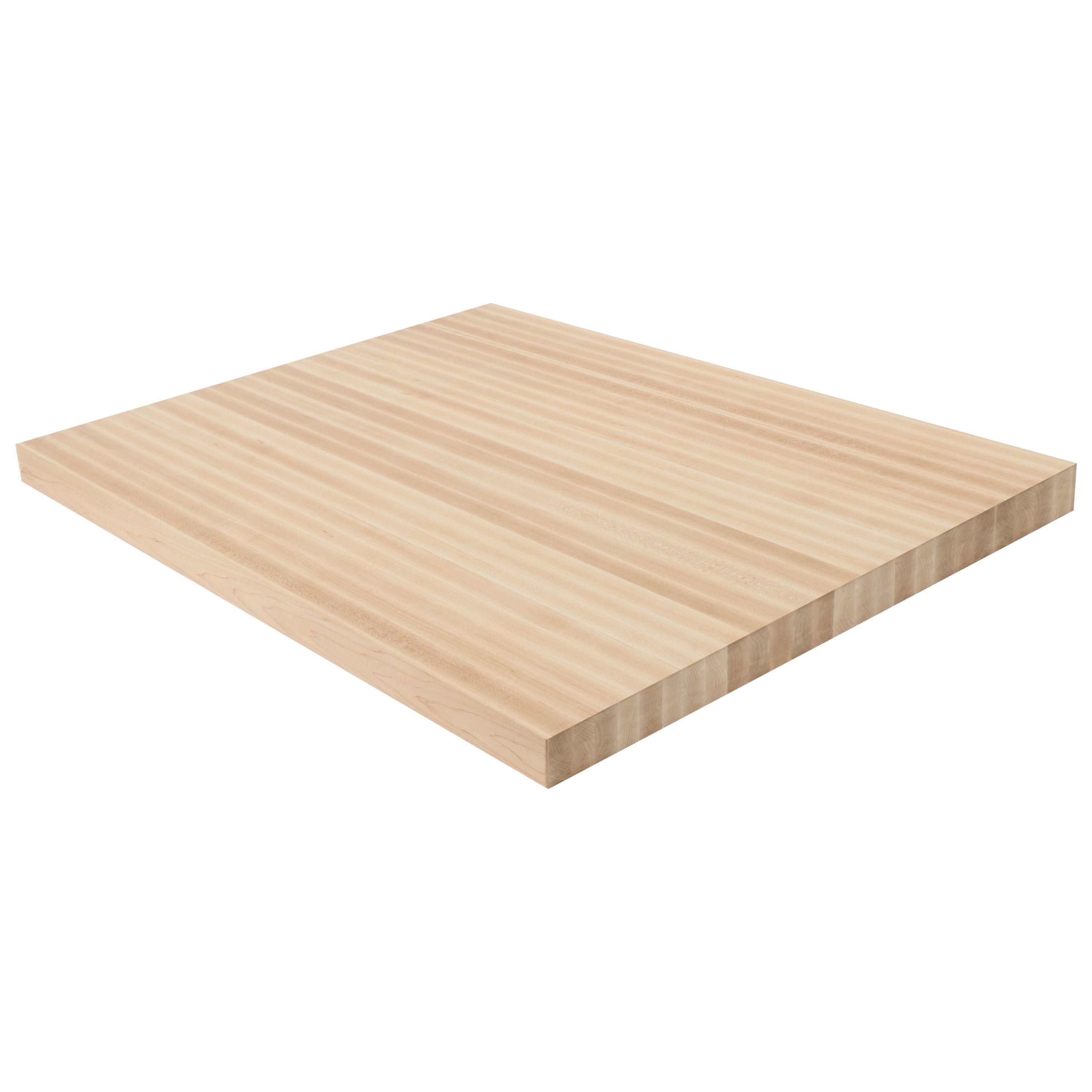 Make a clean, modern statement with the 2" Hard Maple Butcher Block Landing Platform. Solid 5/4 boards are glued face-to-face to build up a full 2" thickness, so you're looking at the beautiful face grain-never the edge-on every surface. Each of the 6 sides is sanded smooth and finished to your specifications, with a refined 1/8" roundover on every edge. Hard Maple is one of the densest domestic hardwoods available, boasting a Janka rating of 1,450-making it exceptionally resistant to dents and wear. Its creamy white to light tan color and subtle, consistent grain pattern create a clean, contemporary look that works beautifully in modern and Scandinavian-inspired interiors. Hard Maple accepts stain evenly and is an outstanding choice for high-traffic staircases. Available in standard sizes of 36" x 36", 42" x 42", and 48" x 48"-or specify a custom size. Choose unfinished to apply your own stain or clear coat, or select a pre-finished option for a ready-to-install landing platform. Matching stair treads are available to complete your staircase. Note: at 2" thickness, a landing pan or supporting structure beneath the landing is recommended for optimal rigidity.