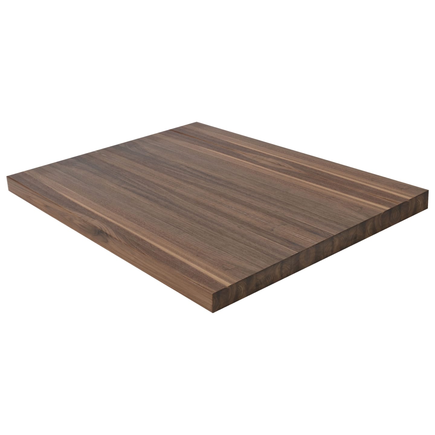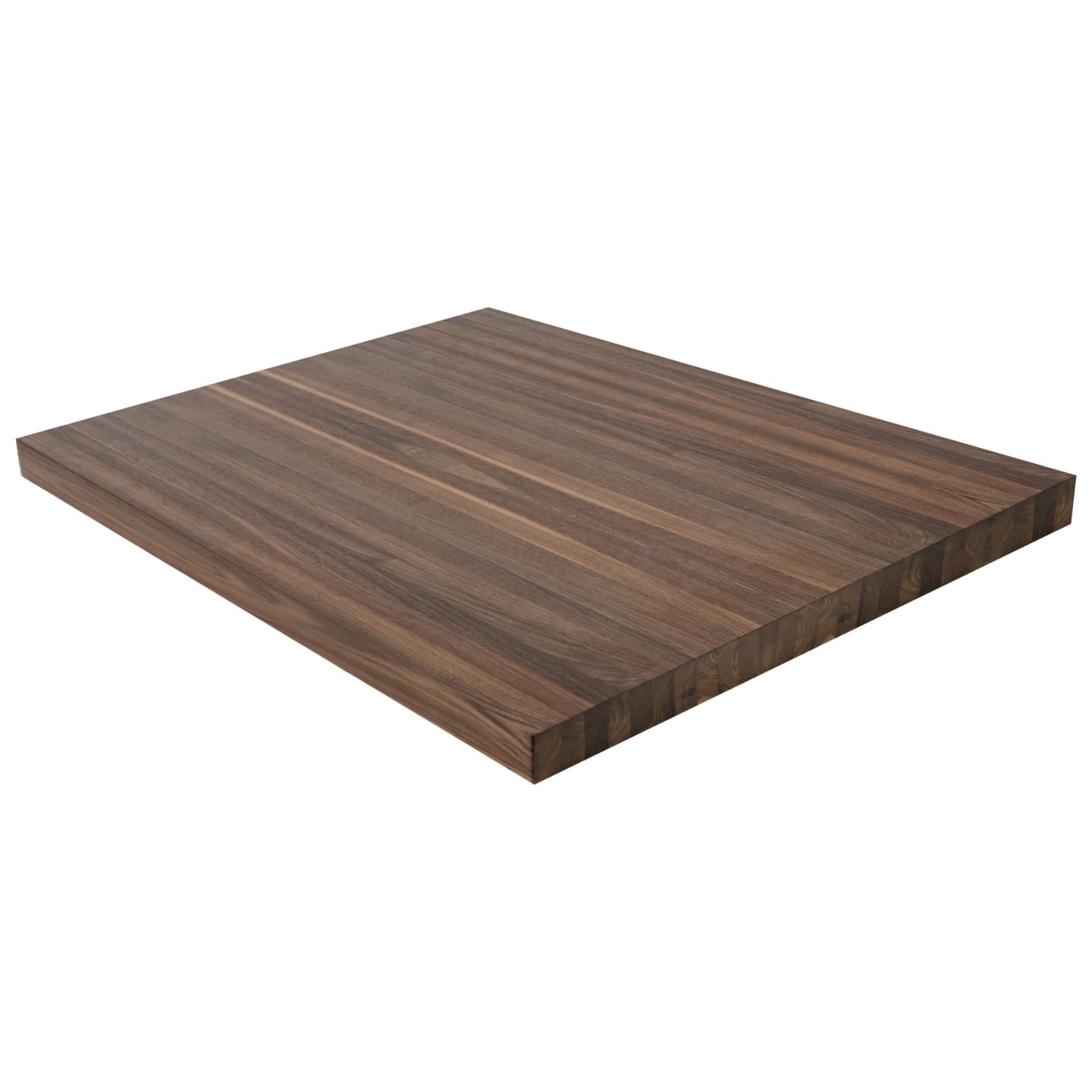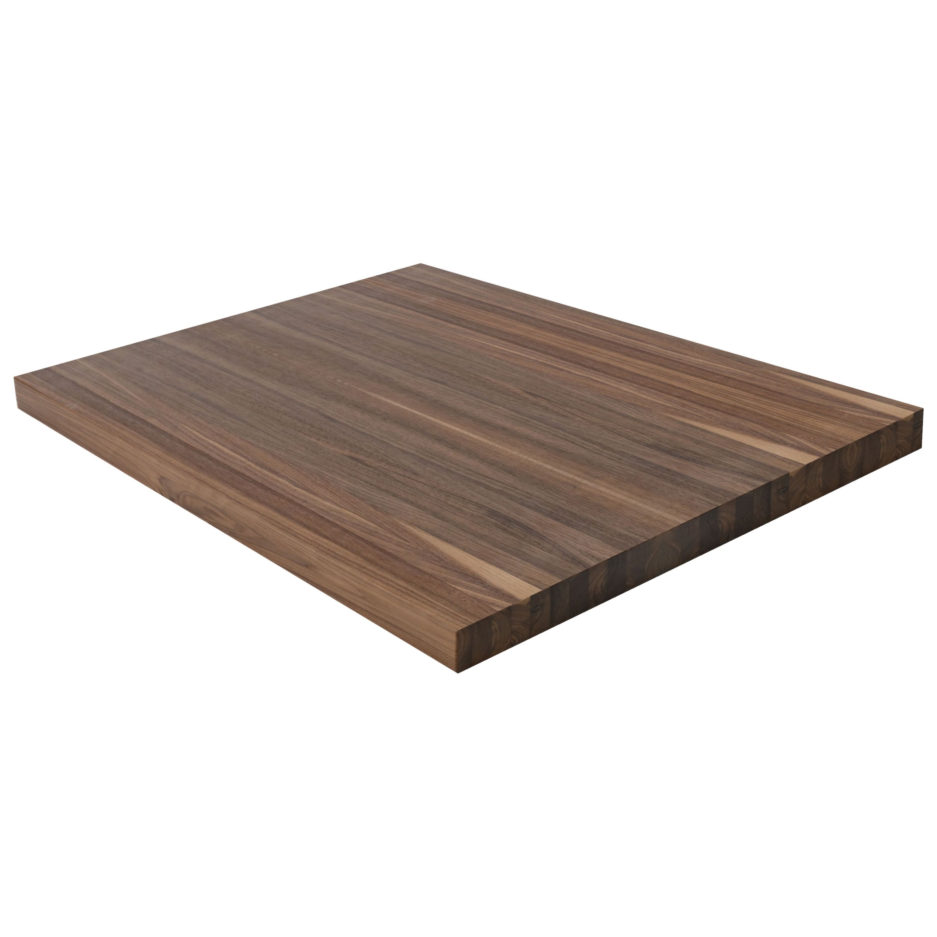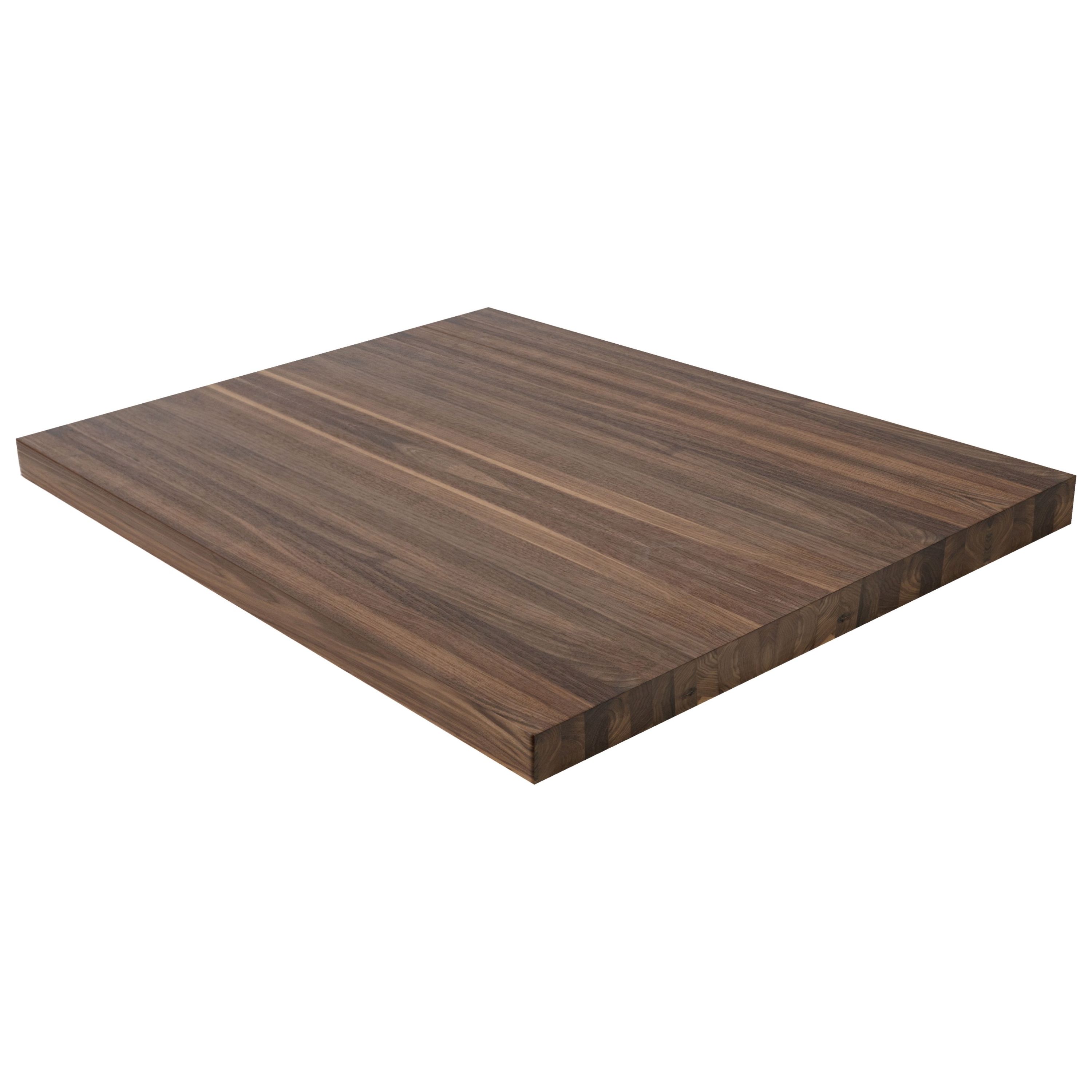 Make a clean, modern statement with the 2" Walnut Butcher Block Landing Platform. Solid 5/4 boards are glued face-to-face to build up a full 2" thickness, so you're looking at the beautiful face grain-never the edge-on every surface. Each of the 6 sides is sanded smooth and finished to your specifications, with a refined 1/8" roundover on every edge. Walnut is one of the most coveted hardwoods in the world, celebrated for its rich chocolate-brown heartwood with subtle purple and gray undertones. Each landing showcases Walnut's naturally striking grain, which varies from straight to wavy, lending every staircase a sense of warmth and luxury. At 1,010 Janka, Walnut is moderately hard and notably stable-resisting shrinking and warping-making it as practical as it is beautiful. Available in standard sizes of 36" x 36", 42" x 42", and 48" x 48"-or specify a custom size. Choose unfinished to apply your own stain or clear coat, or select a pre-finished option for a ready-to-install landing platform. Matching stair treads are available to complete your staircase. Note: at 2" thickness, a landing pan or supporting structure beneath the landing is recommended for optimal rigidity.