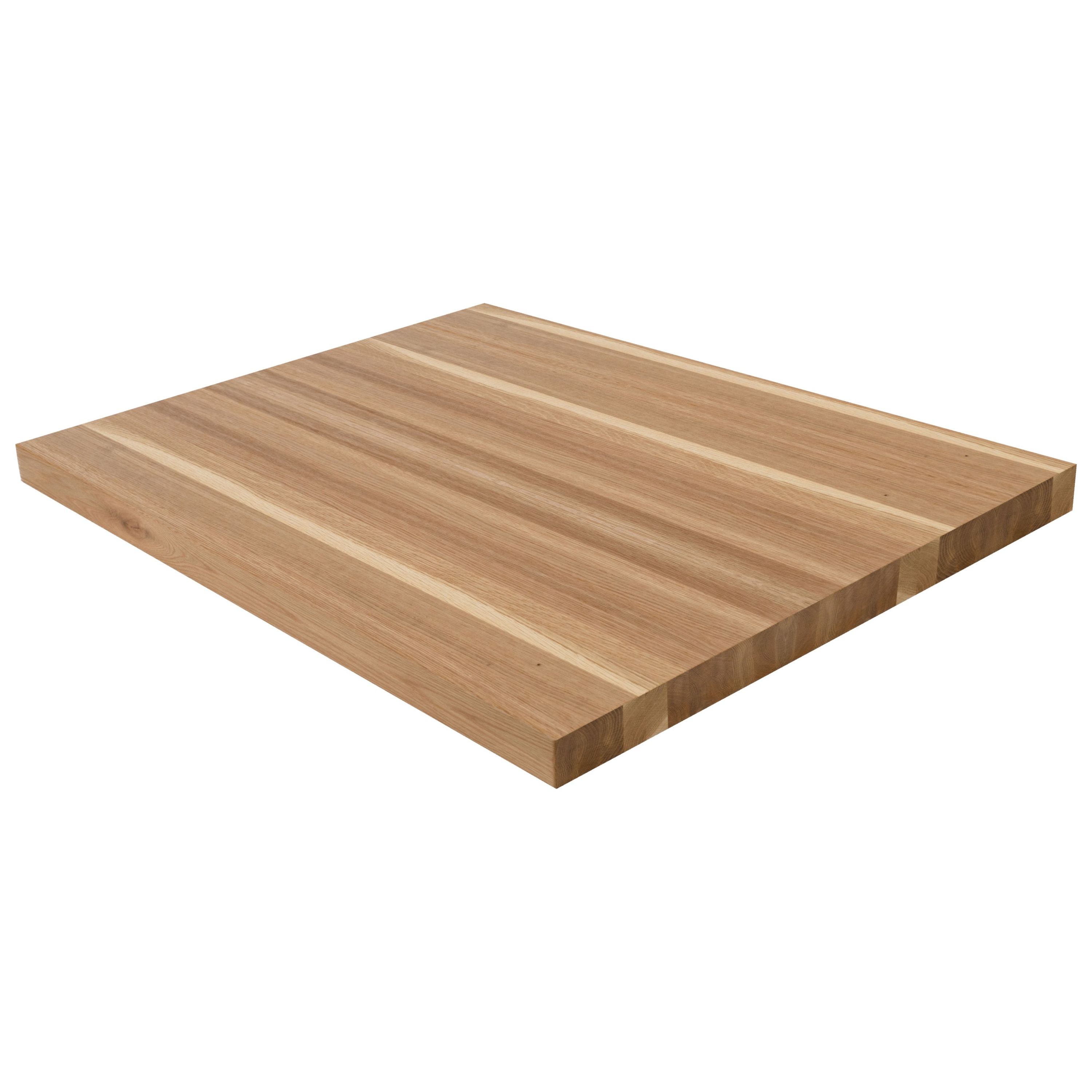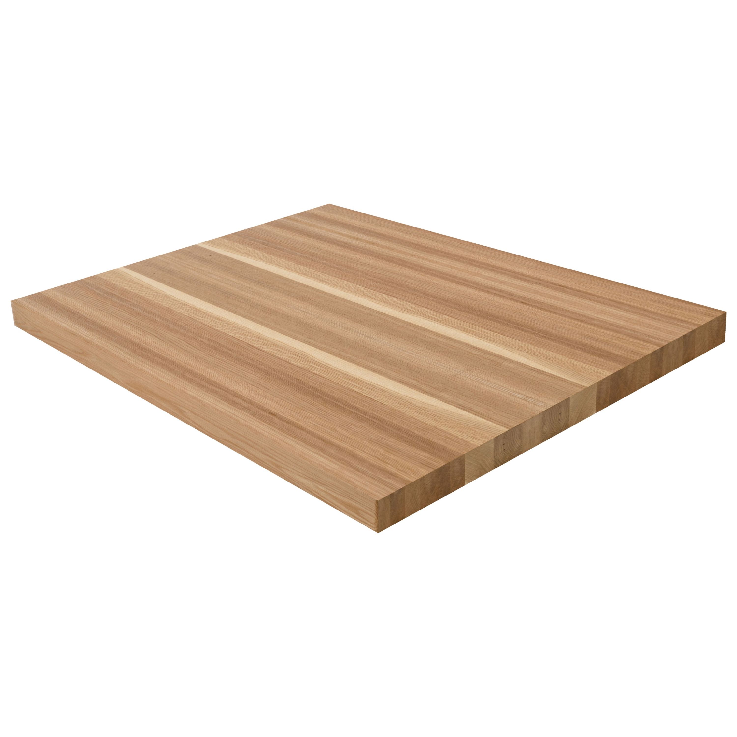 Make a clean, modern statement with the 2" White Oak Butcher Block Landing Platform. Solid 5/4 boards are glued face-to-face to build up a full 2" thickness, so you're looking at the beautiful face grain-never the edge-on every surface. Each of the 6 sides is sanded smooth and finished to your specifications, with a refined 1/8" roundover on every edge. White Oak is the defining wood of modern interior design-its neutral, gray-tan tones and tight, straight grain complement everything from minimalist to mid-century aesthetics. With a Janka hardness of 1,360 and outstanding natural resistance to moisture, White Oak is exceptionally durable and stable. It accepts a wide range of stains, from blonde naturals to deep charcoals, making it one of the most versatile species in our collection. Available in standard sizes of 36" x 36", 42" x 42", and 48" x 48"-or specify a custom size. Choose unfinished to apply your own stain or clear coat, or select a pre-finished option for a ready-to-install landing platform. Matching stair treads are available to complete your staircase. Note: at 2" thickness, a landing pan or supporting structure beneath the landing is recommended for optimal rigidity.