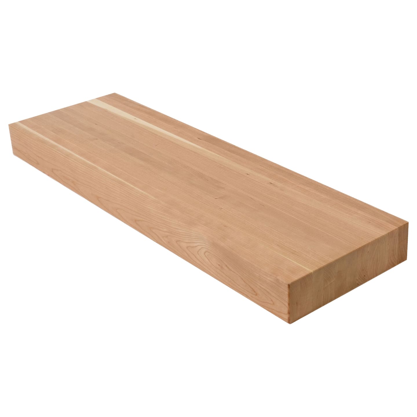 American Cherry is one of the most prized domestic hardwoods — and in butcher block form, a material whose slow, graceful aging becomes a design feature in its own right. Its light pinkish-tan tones at installation — rendered in the tight, repeating rhythm of edge-grain strips — deepen through natural light exposure into rich, warm reddish-brown over months and years, creating a surface that evolves in ways no stain or finish can authentically replicate. With its fine grain and exceptional workability, American Cherry in butcher block form takes finish with a surface quality that rivals custom cabinetry. The laminated construction improves dimensional stability relative to solid Cherry, while preserving the natural color-deepening process that makes this species uniquely rewarding over time. American Cherry butcher block is the choice for those who value materials that age with intention. The staircase you install today will be richer, warmer, and more characterful at five years — and more so at ten.
