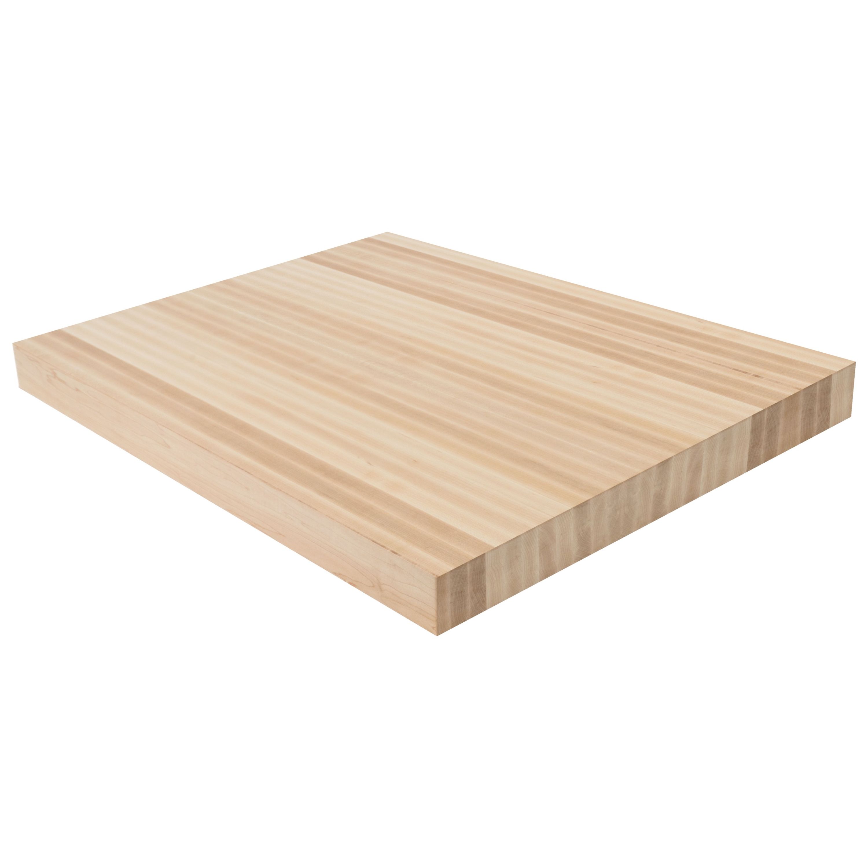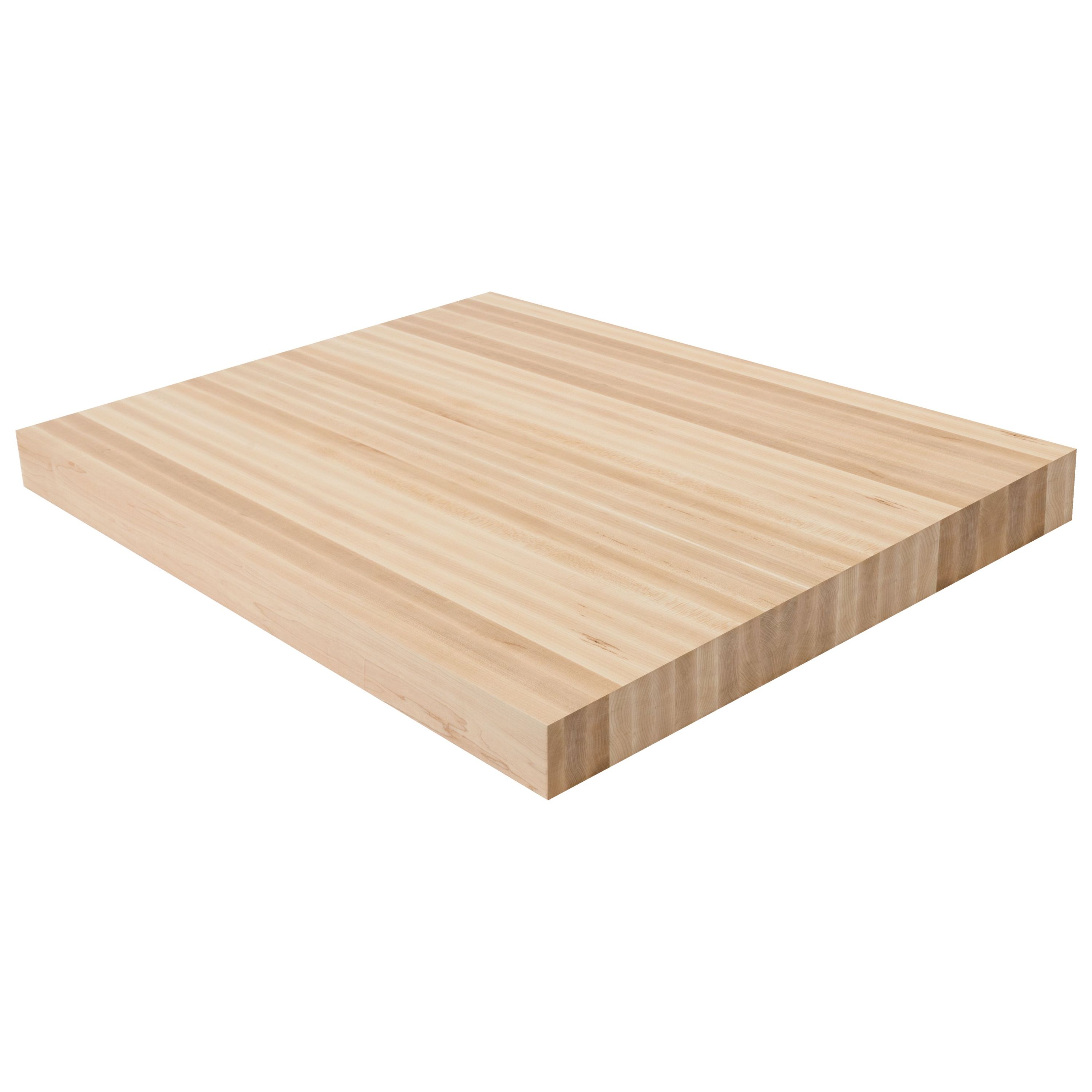 Make a confident architectural statement with the 3" Hard Maple Butcher Block Landing Platform. At a full 3" thick, these landings are built from solid 5/4 lumber glued face-to-face-delivering face grain beauty on all 6 sanded and finished sides with zero edge grain in sight. A 1/8" roundover on every edge gives a refined, intentional look. Hard Maple is one of the densest domestic hardwoods available, boasting a Janka rating of 1,450-making it exceptionally resistant to dents and wear. Its creamy white to light tan color and subtle, consistent grain pattern create a clean, contemporary look that works beautifully in modern and Scandinavian-inspired interiors. Hard Maple accepts stain evenly and is an outstanding choice for high-traffic staircases. Available in standard sizes of 36" x 36", 42" x 42", and 48" x 48"-or specify a custom size. Choose unfinished or pre-finished to your specifications. The 3" thickness is a popular choice for Viewrail FLIGHT floating stair systems, complemented beautifully by cable or glass railing. Matching stair treads are available to complete your staircase.