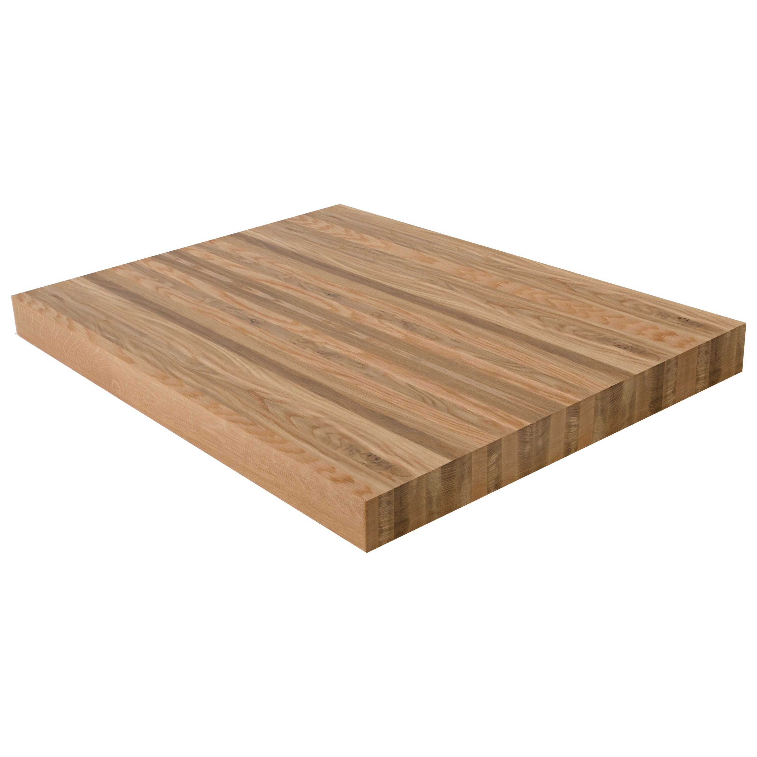 Make a confident architectural statement with the 3" Quartersawn White Oak Butcher Block Landing Platform. At a full 3" thick, these landings are built from solid 5/4 lumber glued face-to-face-delivering face grain beauty on all 6 sanded and finished sides with zero edge grain in sight. A 1/8" roundover on every edge gives a refined, intentional look. Quartersawn White Oak is cut perpendicular to the growth rings, producing the distinctive ray fleck pattern-a repeating, lustrous shimmer across the face of each landing. This cut also improves dimensional stability compared to flat-sawn lumber, reducing expansion and contraction over time. With a Janka hardness of 1,360 and a rich, golden-tan tone, Quartersawn White Oak is a favorite in craftsman, transitional, and high-end contemporary interiors. Available in standard sizes of 36" x 36", 42" x 42", and 48" x 48"-or specify a custom size. Choose unfinished or pre-finished to your specifications. The 3" thickness is a popular choice for Viewrail FLIGHT floating stair systems, complemented beautifully by cable or glass railing. Matching stair treads are available to complete your staircase.