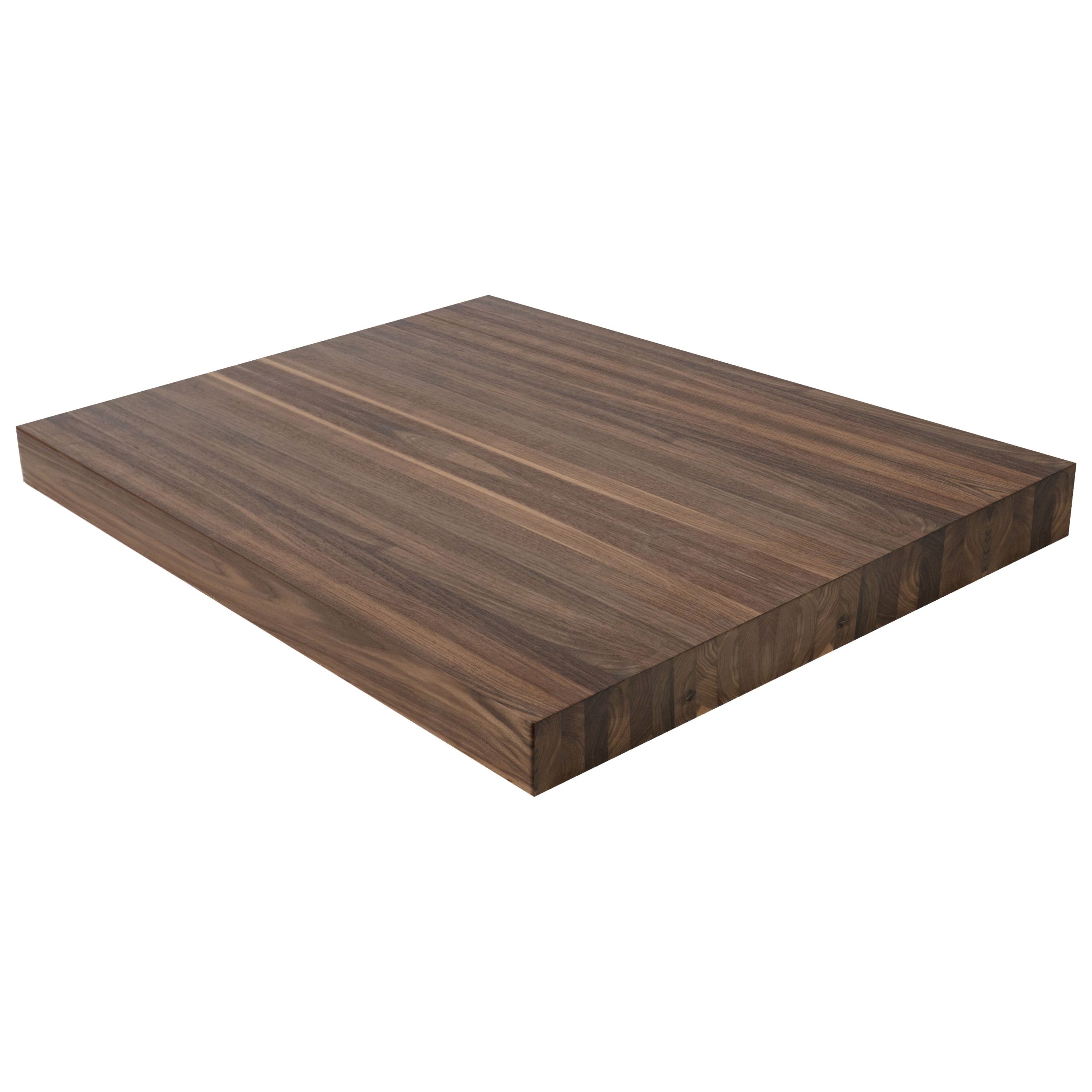 Make a confident architectural statement with the 3" Walnut Butcher Block Landing Platform. At a full 3" thick, these landings are built from solid 5/4 lumber glued face-to-face-delivering face grain beauty on all 6 sanded and finished sides with zero edge grain in sight. A 1/8" roundover on every edge gives a refined, intentional look. Walnut is one of the most coveted hardwoods in the world, celebrated for its rich chocolate-brown heartwood with subtle purple and gray undertones. Each landing showcases Walnut's naturally striking grain, which varies from straight to wavy, lending every staircase a sense of warmth and luxury. At 1,010 Janka, Walnut is moderately hard and notably stable-resisting shrinking and warping-making it as practical as it is beautiful. Available in standard sizes of 36" x 36", 42" x 42", and 48" x 48"-or specify a custom size. Choose unfinished or pre-finished to your specifications. The 3" thickness is a popular choice for Viewrail FLIGHT floating stair systems, complemented beautifully by cable or glass railing. Matching stair treads are available to complete your staircase.