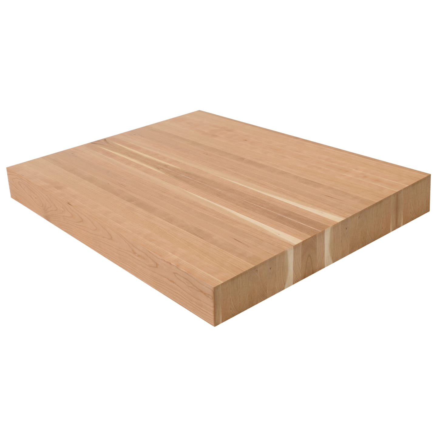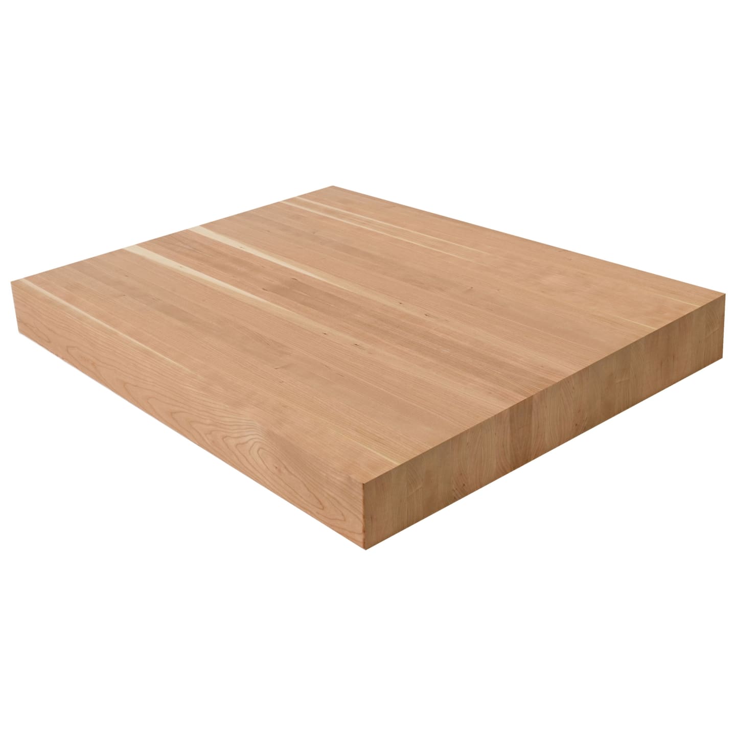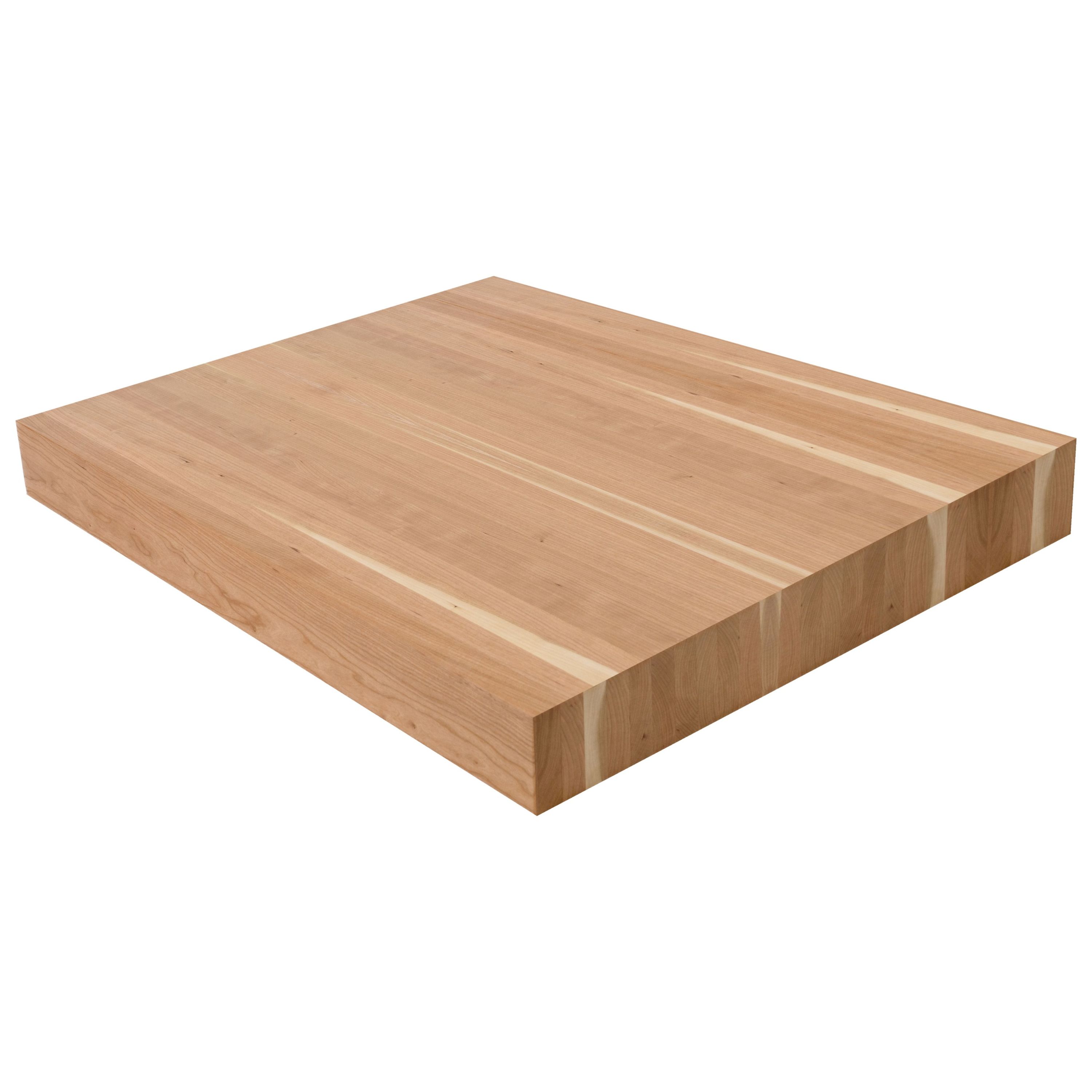 The 4" American Cherry Butcher Block Landing Platform is the ultimate expression of solid wood craftsmanship. At a commanding 4" thick, these landings are built from solid 5/4 lumber glued face-to-face, showcasing exceptional face grain on all 6 sanded and finished sides. A 1/8" roundover on every edge completes the refined look. American Cherry is prized for its warm, reddish-brown heartwood that deepens and enriches with age and light exposure-a natural patina that makes every staircase more beautiful over time. With a smooth, fine grain and moderate hardness (950 Janka), Cherry strikes the perfect balance between workability and durability, accepting stain beautifully or standing on its own with a clear finish for a timeless, elegant look. Available in standard sizes of 36" x 36", 42" x 42", and 48" x 48"-or specify a custom size. Choose unfinished or pre-finished to your specifications. At 4", these landings make an unforgettable impression on Viewrail FLIGHT floating stairs paired with cable or glass railing. Matching stair treads are available to complete your staircase.