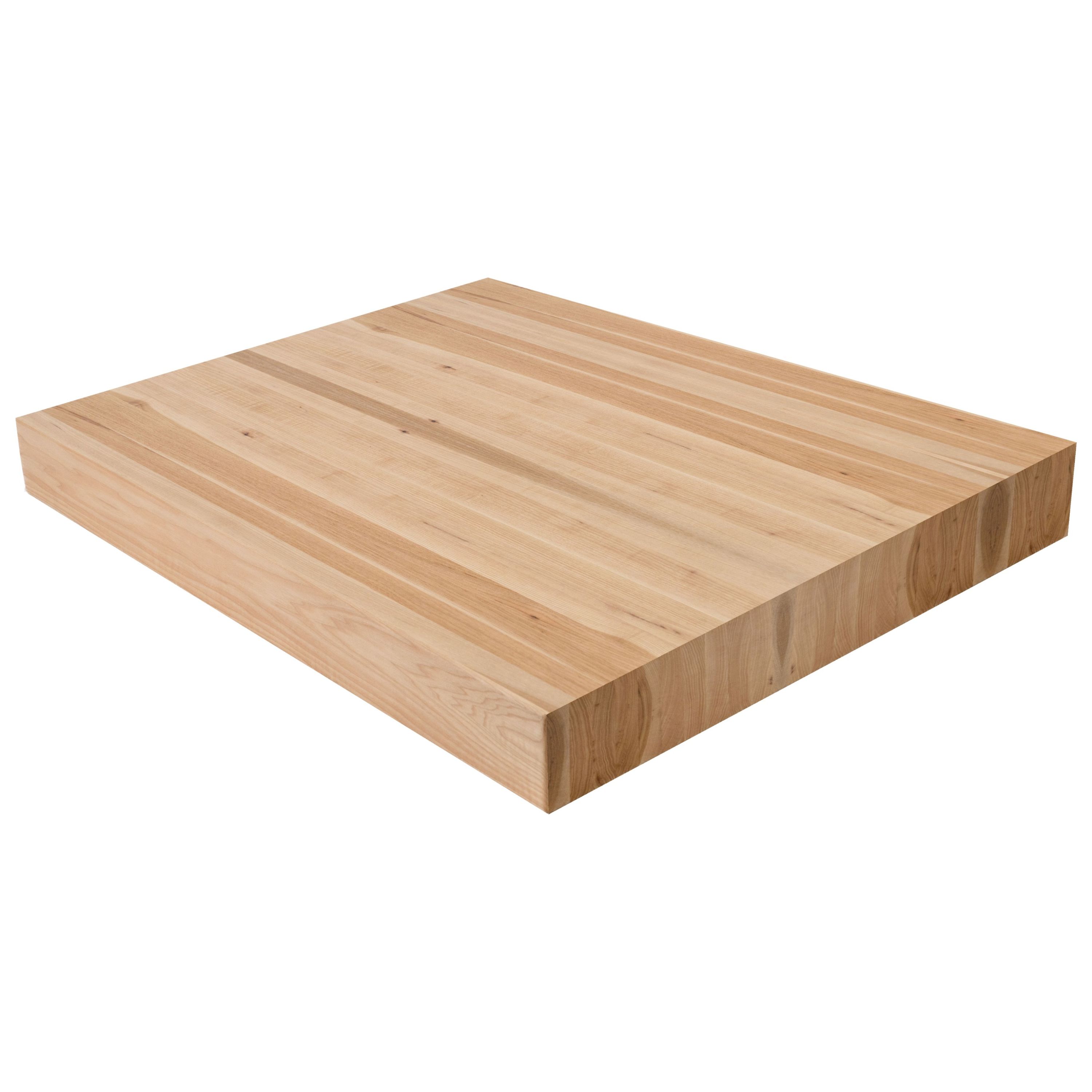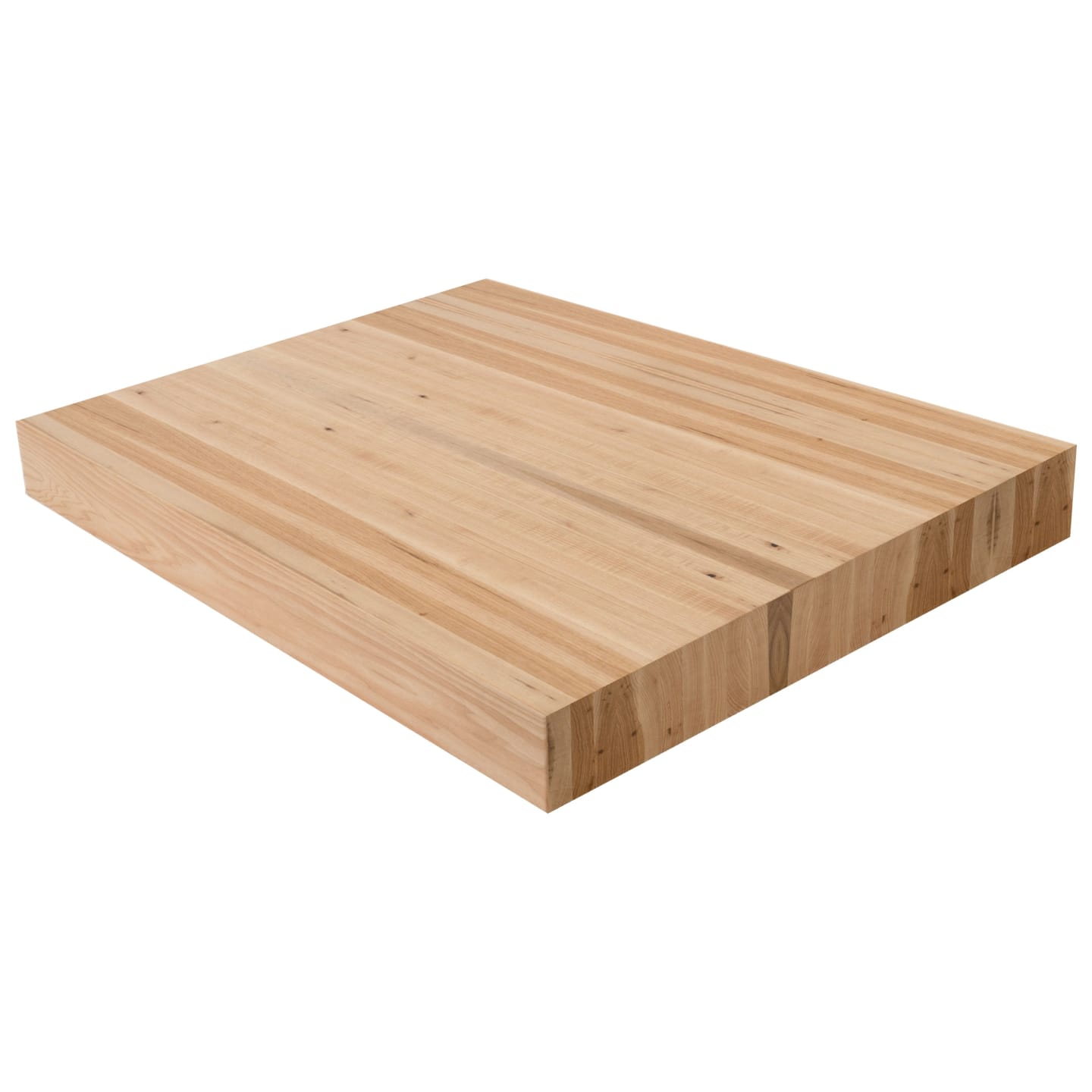 The 4" Hickory Butcher Block Landing Platform is the ultimate expression of solid wood craftsmanship. At a commanding 4" thick, these landings are built from solid 5/4 lumber glued face-to-face, showcasing exceptional face grain on all 6 sanded and finished sides. A 1/8" roundover on every edge completes the refined look. Hickory is the hardest and most character-rich domestic hardwood in our lineup, with a Janka rating of 1,820. Its dramatic color variation-ranging from pale cream sapwood to deep reddish-brown heartwood-delivers a bold, one-of-a-kind look on every landing. Hickory's natural knots and swirling grain patterns make it ideal for rustic, farmhouse, or eclectic stair designs where personality and toughness matter most. Available in standard sizes of 36" x 36", 42" x 42", and 48" x 48"-or specify a custom size. Choose unfinished or pre-finished to your specifications. At 4", these landings make an unforgettable impression on Viewrail FLIGHT floating stairs paired with cable or glass railing. Matching stair treads are available to complete your staircase.