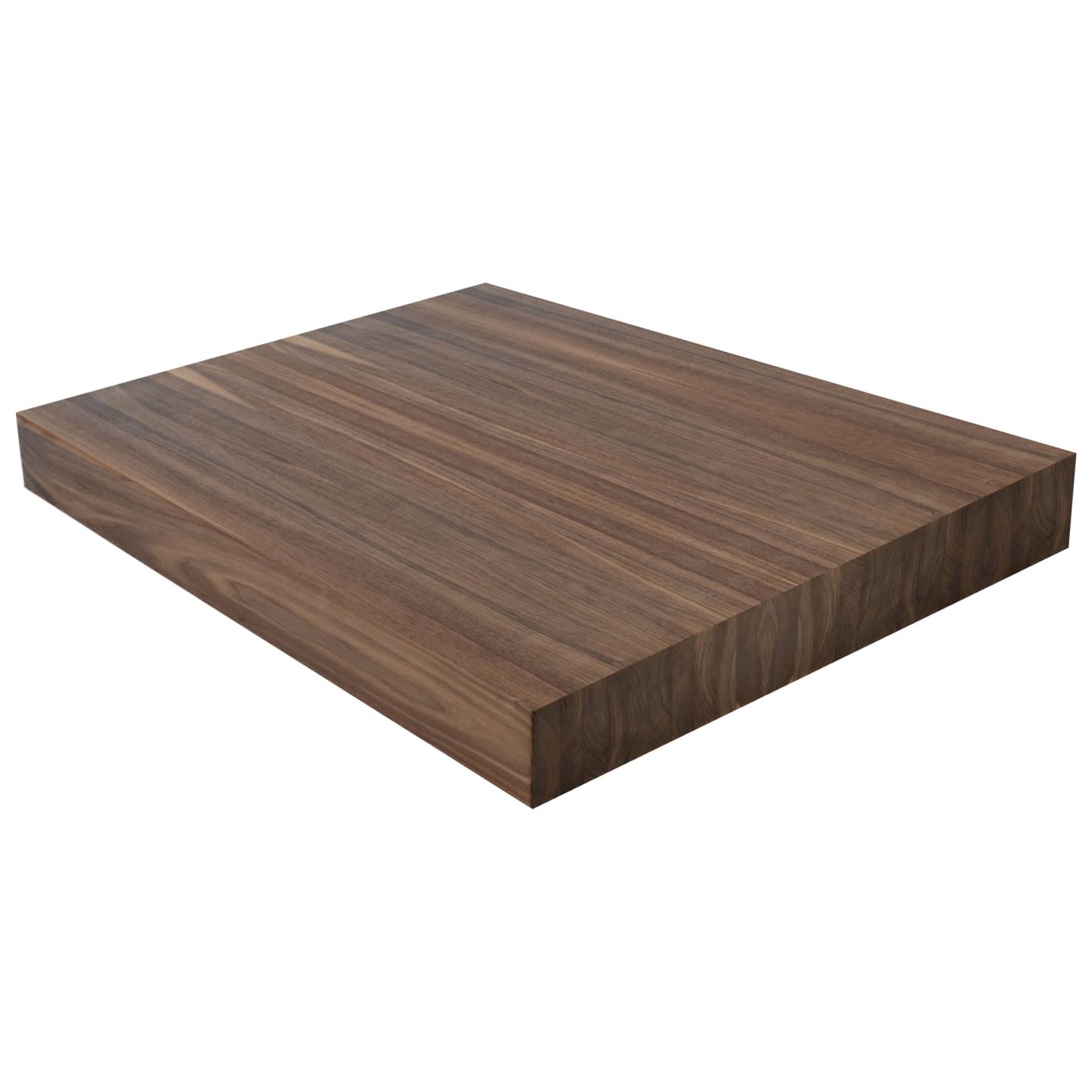 The 4" Walnut Butcher Block Landing Platform is the ultimate expression of solid wood craftsmanship. At a commanding 4" thick, these landings are built from solid 5/4 lumber glued face-to-face, showcasing exceptional face grain on all 6 sanded and finished sides. A 1/8" roundover on every edge completes the refined look. Walnut is one of the most coveted hardwoods in the world, celebrated for its rich chocolate-brown heartwood with subtle purple and gray undertones. Each landing showcases Walnut's naturally striking grain, which varies from straight to wavy, lending every staircase a sense of warmth and luxury. At 1,010 Janka, Walnut is moderately hard and notably stable-resisting shrinking and warping-making it as practical as it is beautiful. Available in standard sizes of 36" x 36", 42" x 42", and 48" x 48"-or specify a custom size. Choose unfinished or pre-finished to your specifications. At 4", these landings make an unforgettable impression on Viewrail FLIGHT floating stairs paired with cable or glass railing. Matching stair treads are available to complete your staircase.