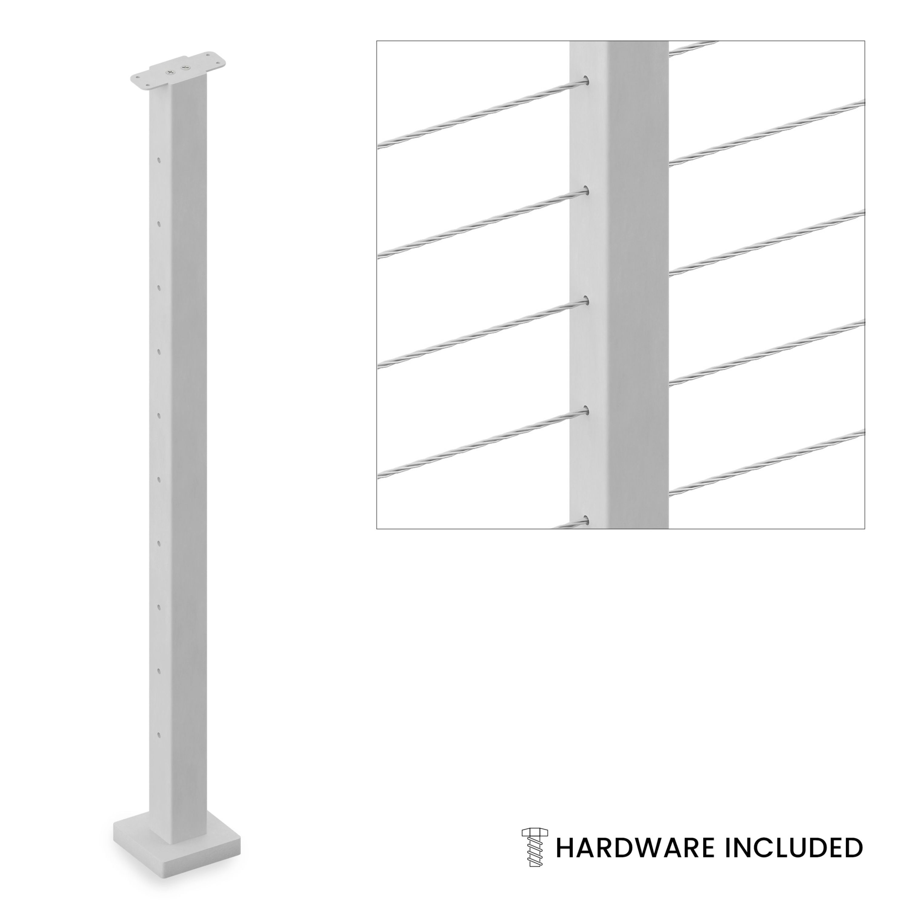 Pre‑drilled on two faces, the Level Line Post keeps cables perfectly level without field drilling or bending. Installed in minutes, the post ships complete with mounting hardware and, in most cases, leaves our Indiana facility in 1-3 business days.