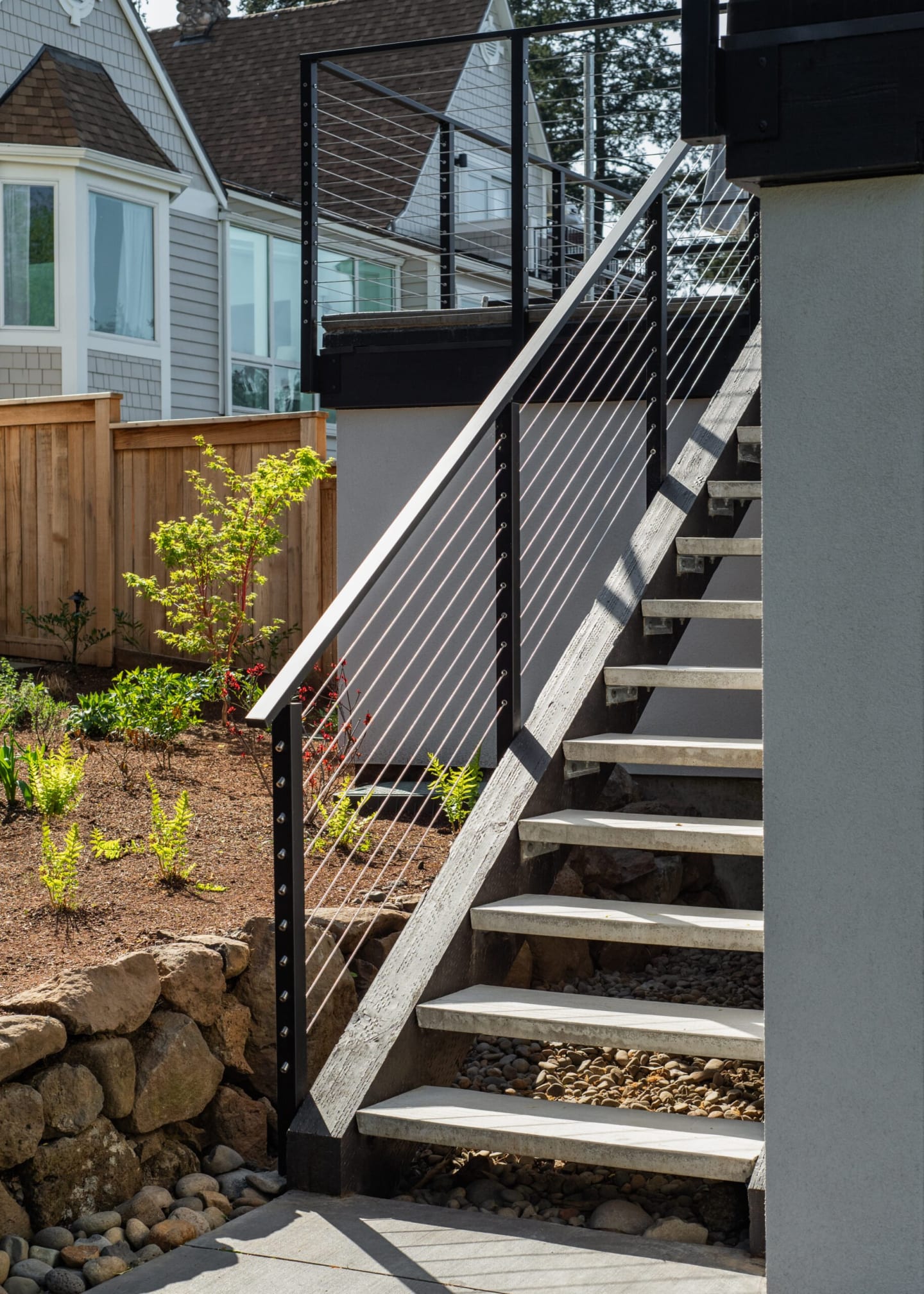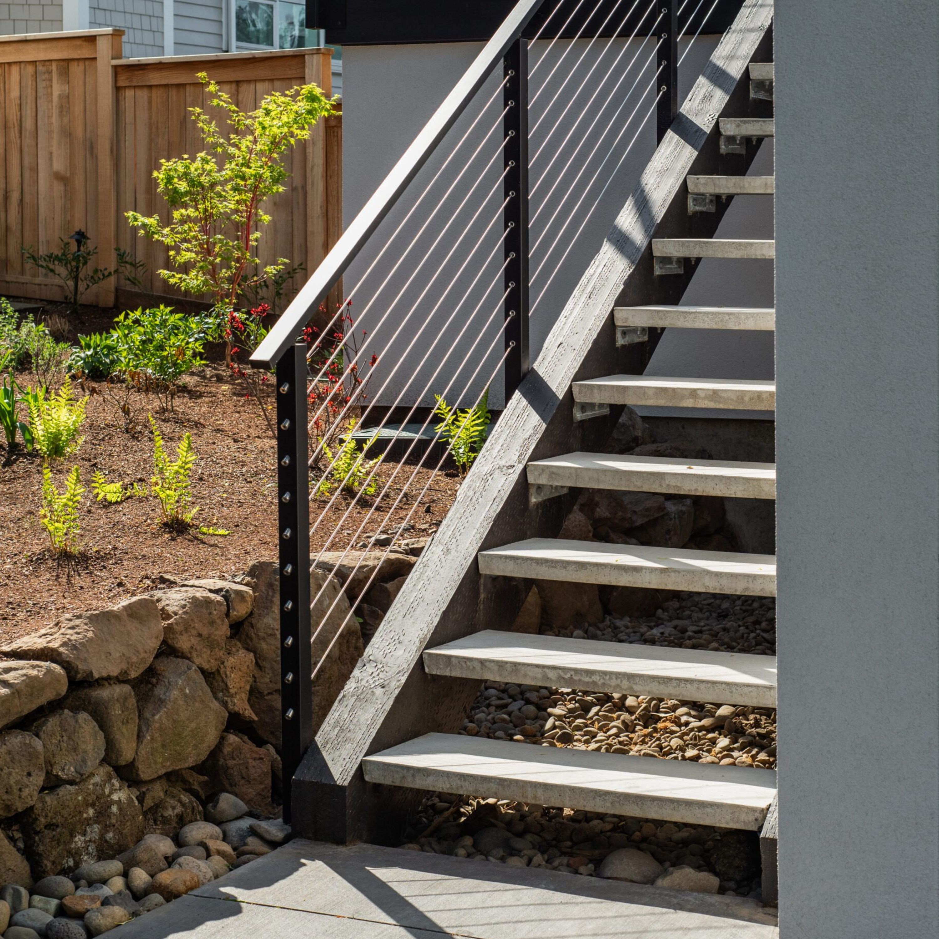 Angle End Side Mount Posts are Viewrail cable railing posts that allow you to directly attach your post to fascia boards on stairs. With the proper amount of blocking on the fascia you can add side mount cable railing posts to any stair system. The side mount angle end post from Viewrail is designed to function as a termination post in angled runs of your railing system. You will need a line post every 4 feet to meet code.