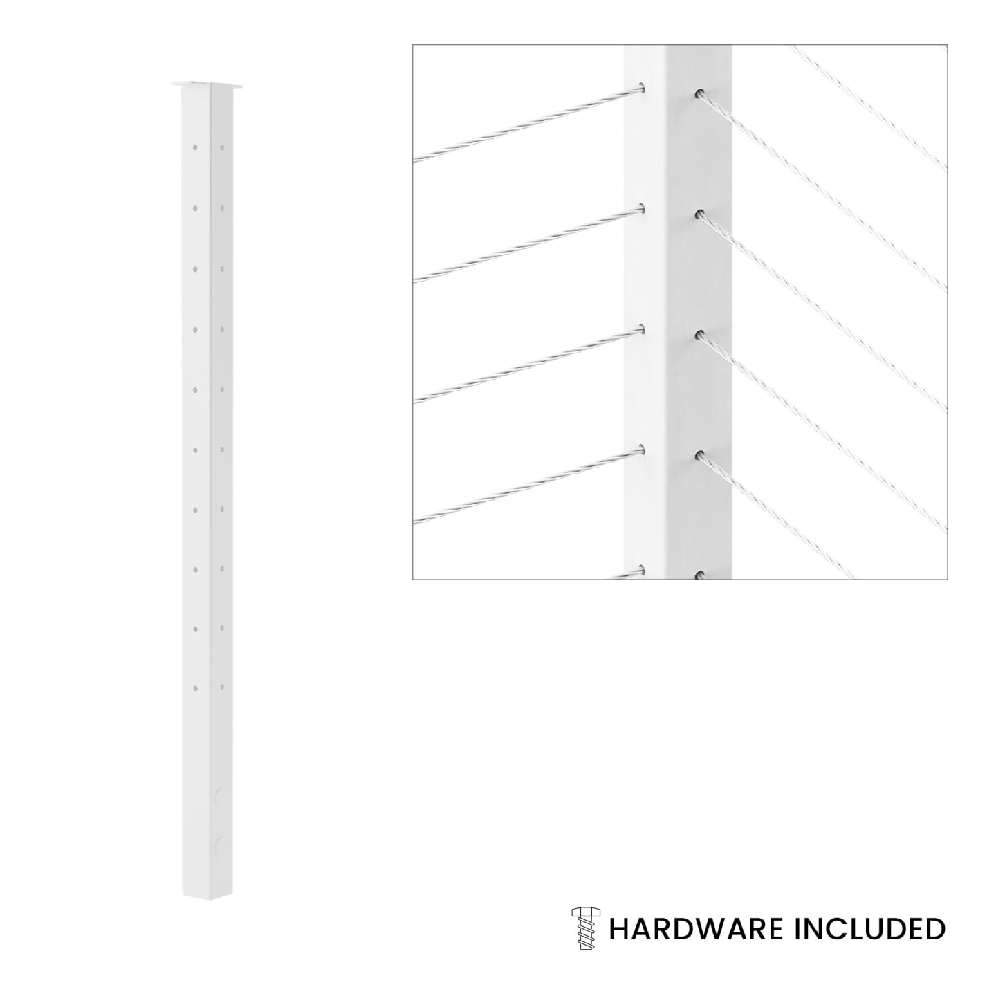 Pre-drilled accuracy — 10 (36 in.) or 12 (42 in.) holes align 1/8 in. cables on 3.125 in. centers.