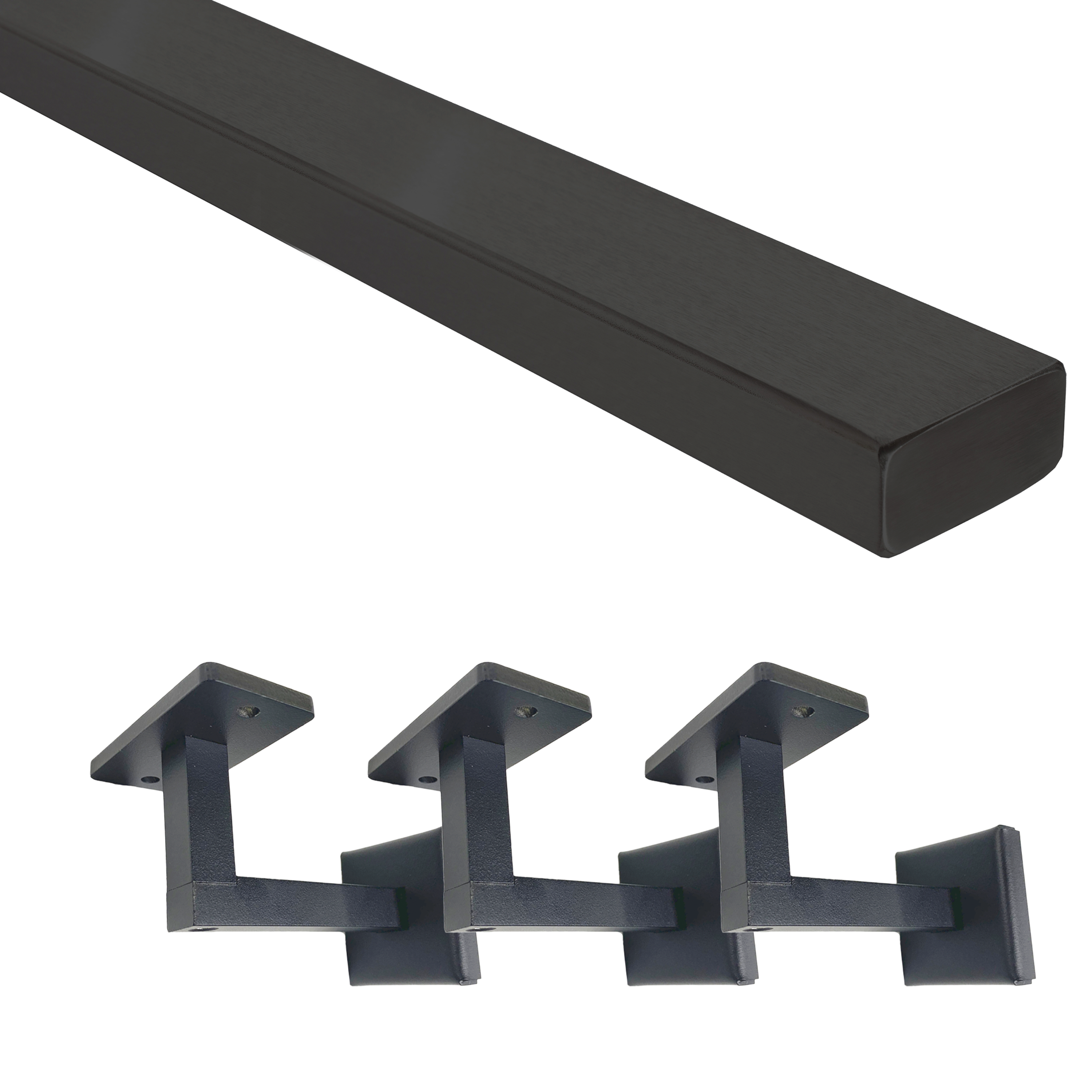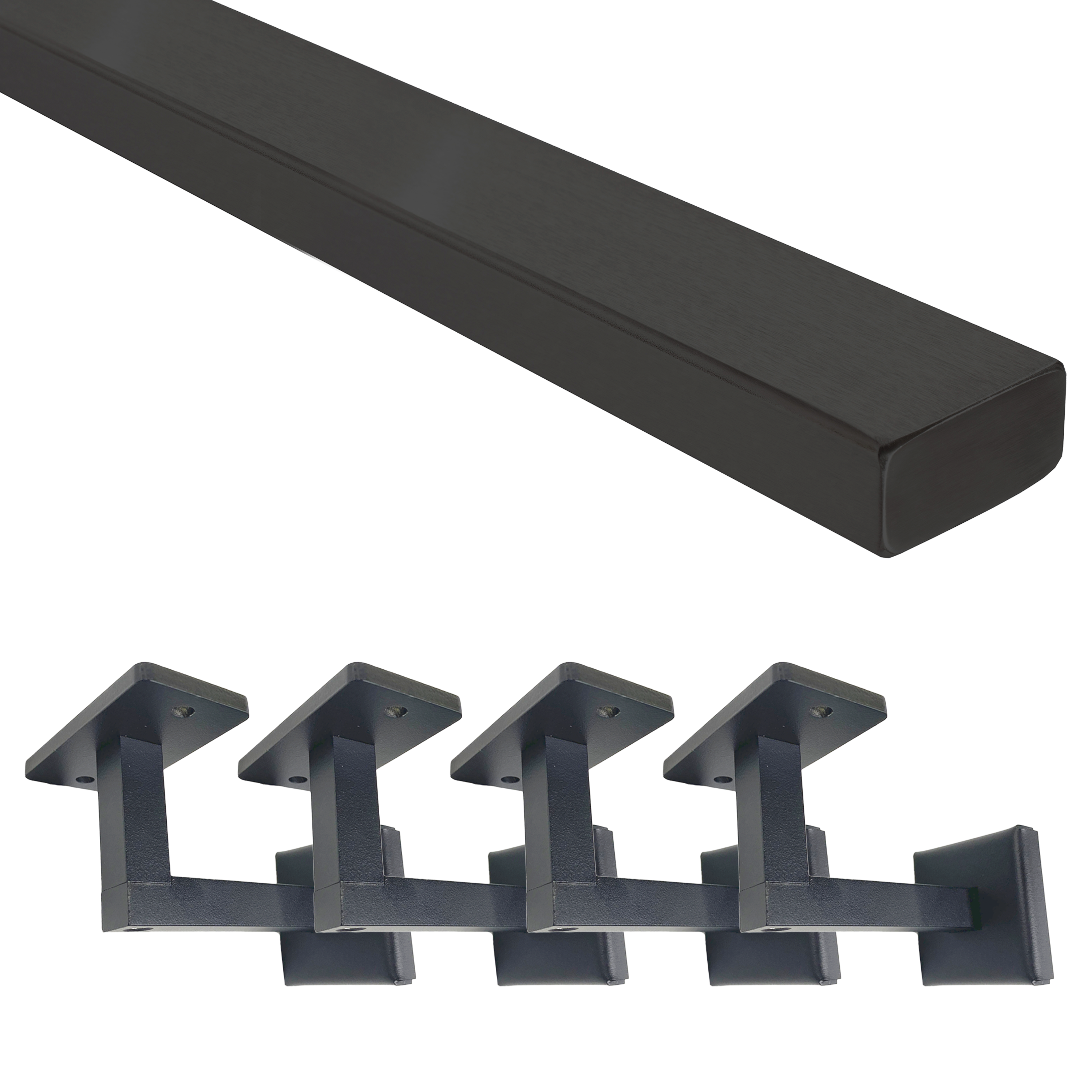 The Express Wall Mounted Handrail kit has everything you need for a simple, stylish modern wall-mounted handrail. The kit includes our standard 1” x 2” Express Handrail in lengths of 4ft, 8ft 6in, 12ft 6in, and 16ft 6in. The kit also includes our Express Wall Mounted Handrail Brackets, which are constructed from steel and powder coated to match your handrail. End plugs are included and can be used to create a finished look on the open ends of the handrail, meaning that this product is jobsite ready.