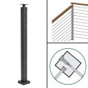 “I” – The “I” post is designed to turn a corner from an angled staircase and change heights to a level balcony turning left or right. It has 10, 5/16″ holes facing the angled run and 10, 1/2″ holes opposite those, and 11 (39″) or 12 (42″), 1/2″ holes drilled on the two level faces. Recommended fittings: “Angle Tension Kits” (36″ – 10 kits) & “Level Tension Kits” (39″ – 11 kits, 42″ – 12 kits). Additional hardware: The Postside Handrail Bracket will make transitioning this handrail much easier.