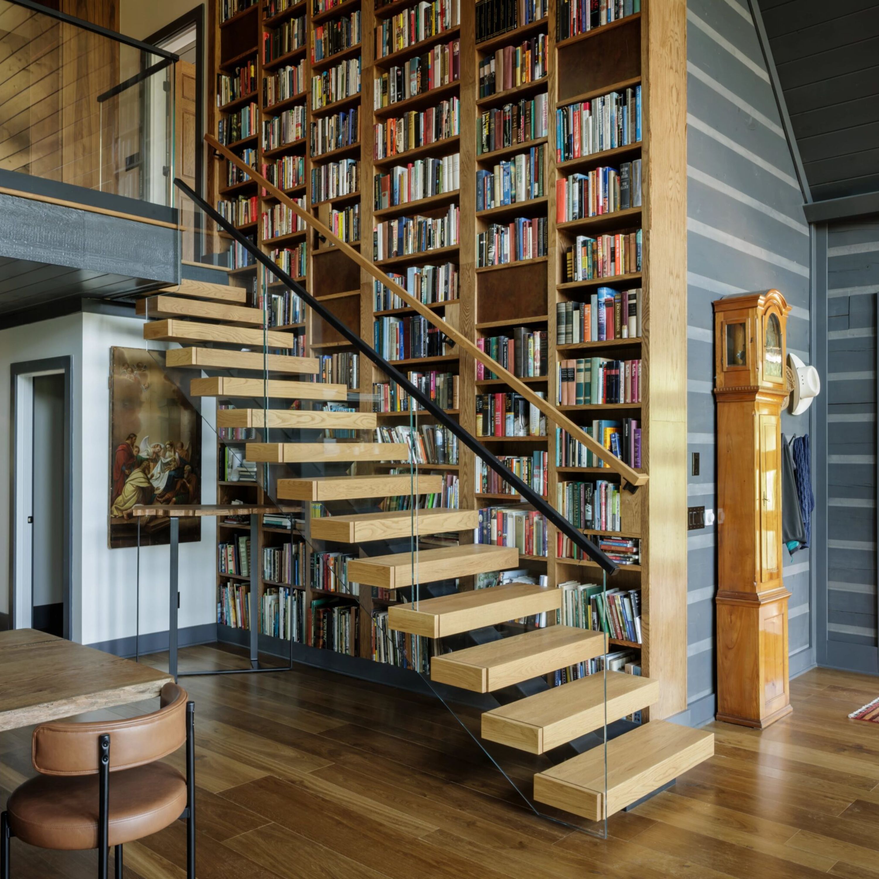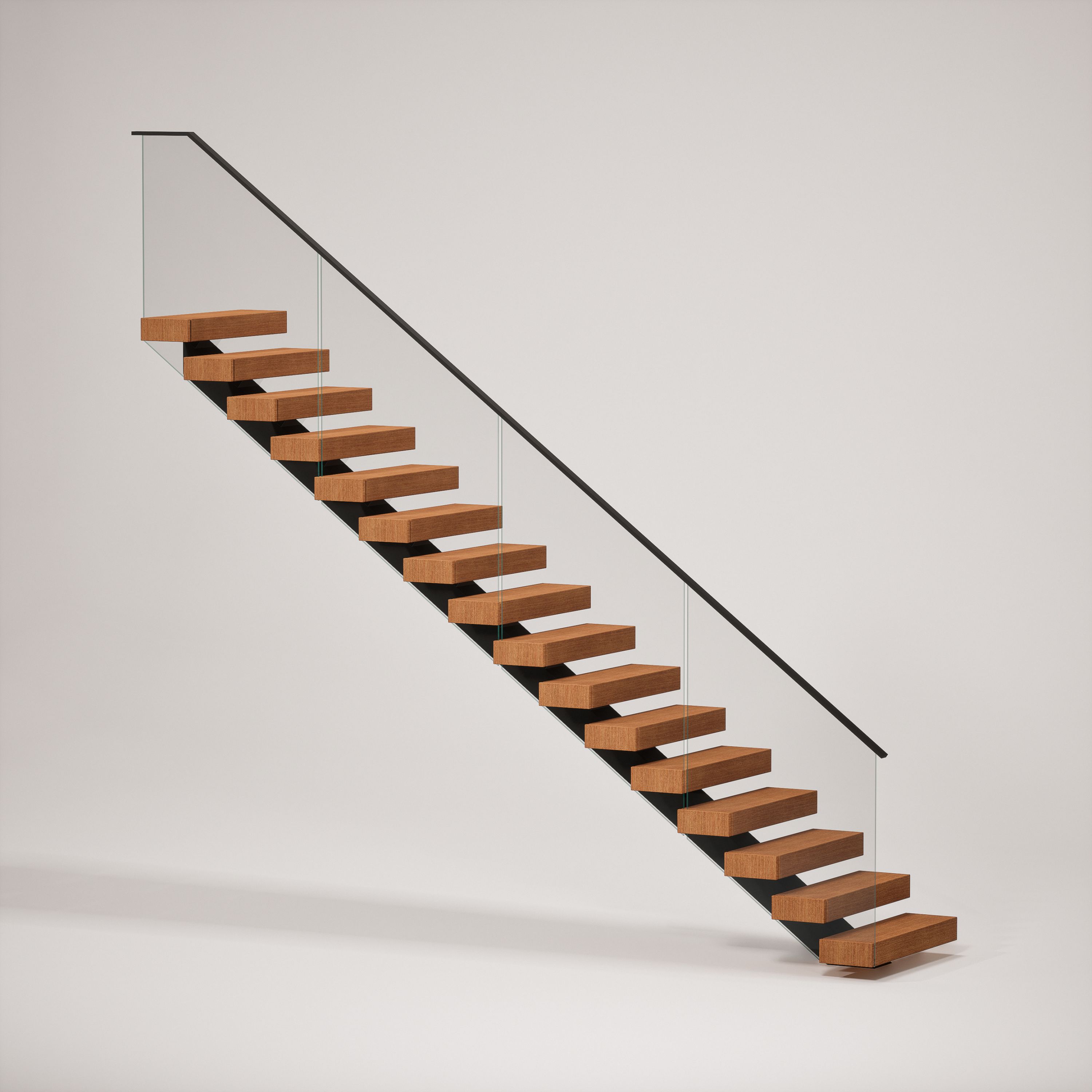 A Floating stair is a modern stair system where the treads appear to "float" without visible structural supports. The structure is hidden or minimal, creating an open, contemporary look